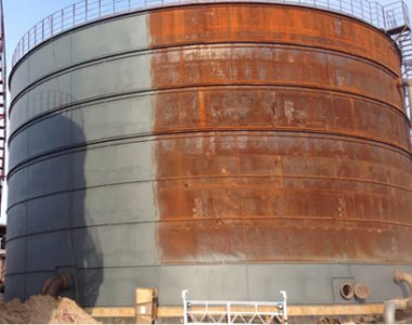 In 2014, epoxy zinc-rich coating materials and epoxy micaceous iron heavy anti-corrosion coating materials were used in the 50,000㎥ storage tank group project of Dongying United Petrochemical Co., Ltd.